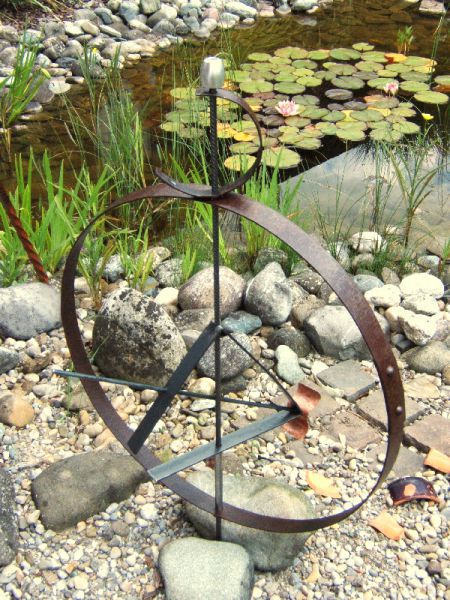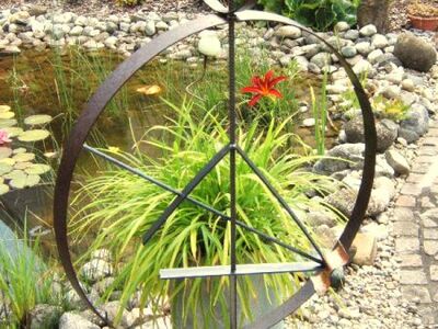 Metallkunst und was man aus Flohmarktkrempel alles basteln kann. Ein Windkreisel aus eisernen Fassreifen, ein alter Fensterflügel, rostige Blechabfälle oder ein abgebrochenes Schaufelblatt. Aus fast all diesem "Krempel" läßt sich noch ein dekoratives Stück erstellen.